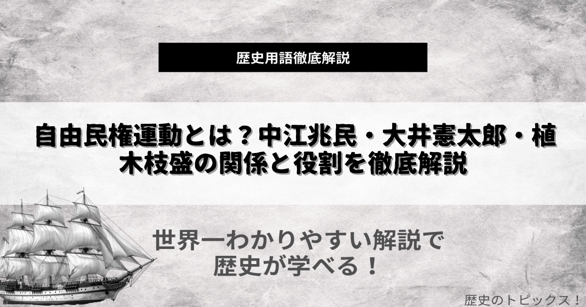 明治時代の日本は、近代国家への道を急速に歩み始めた時代です。そんな中で誕生し、社会に大きな変革をもたらしたのが自由民権運動です。この運動は、国民ひとりひとりの自由や権利を守り、立憲政治や議会制の実現を目指すものでした。中江兆民や大井憲太郎、植木枝盛といった思想家・運動家たちが、どのようにして時代を切り開いていったのか。本記事では、彼らの活動と自由民権運動の本質を、分かりやすく解説します。日本の歴史と民主主義の源流を知りたい方は、ぜひ最後までご覧ください。