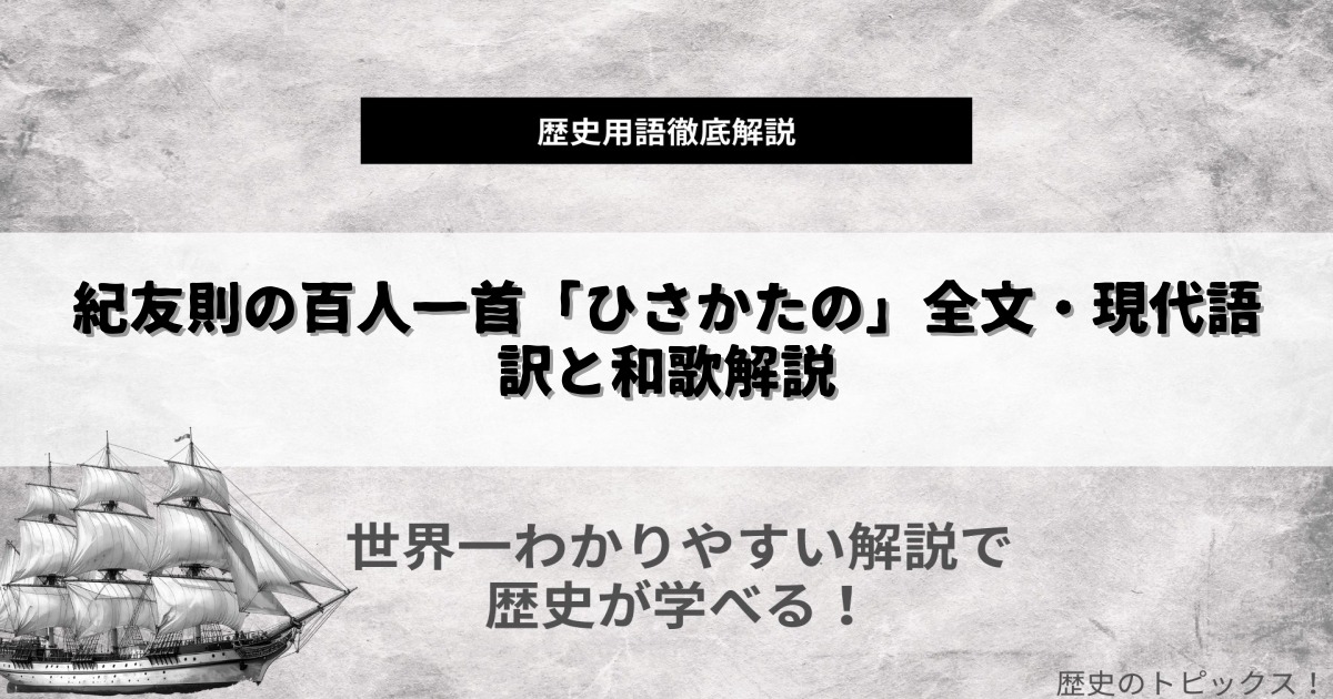 紀友則と言えば、百人一首に選ばれた「ひさかたの~」が代表作として広く知られています。ここでは、和歌の全文と現代語訳、その背景や魅力を解説します。