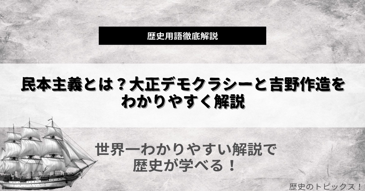 近代日本の歴史を語る上で欠かせないキーワードが「民本主義」です。民本主義は、大正時代のデモクラシー運動と深く結びつき、吉野作造が提唱したことで有名です。しかし、「民本主義」とは具体的に何を意味し、どのような歴史的背景や変革をもたらしたのでしょうか。本記事では、大正デモクラシーの時代背景から吉野作造の思想、そして社会運動の展開まで、民本主義の全体像をわかりやすく徹底解説します。これから日本史を学ぶ方、大正デモクラシーや民本主義について深く理解したい方に最適な内容となっています。