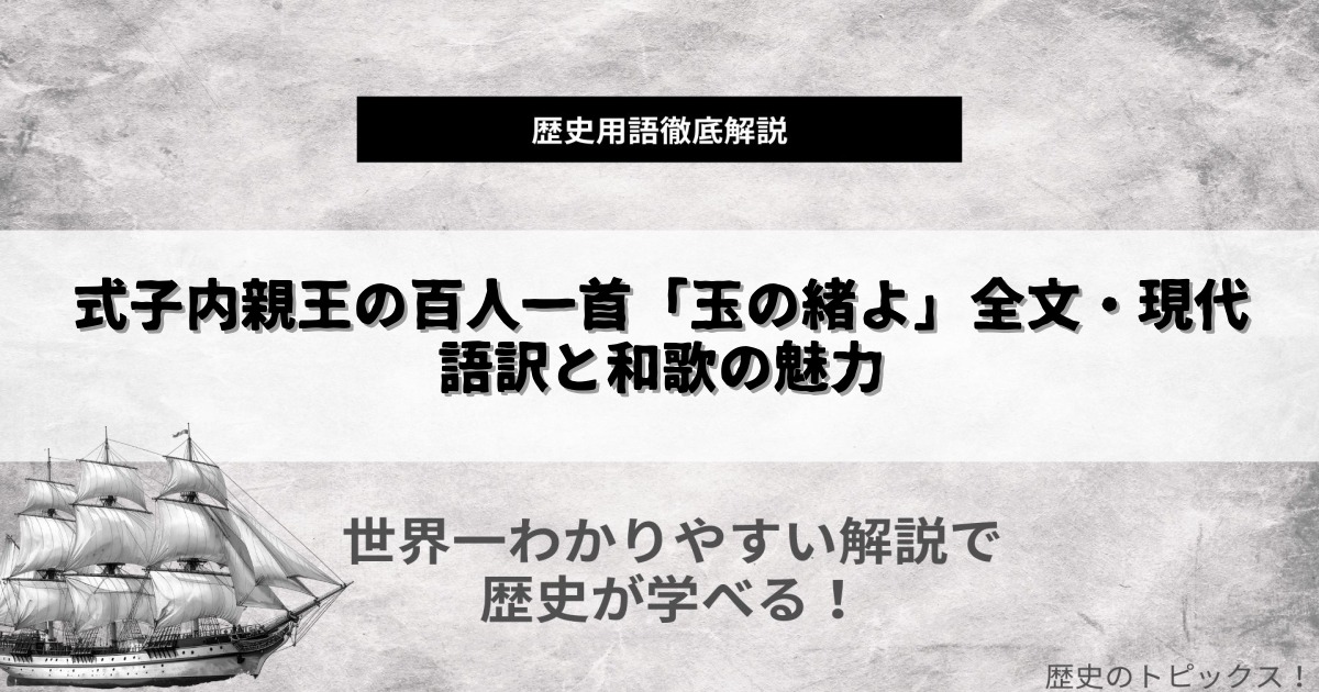 本記事では、式子内親王の百人一首「玉の緒よ~」の全文と現代語訳、代表和歌の紹介、ゆかりの地の案内まで幅広くご紹介しました。