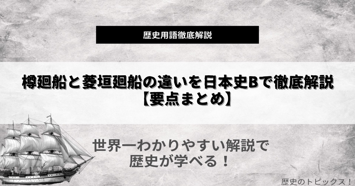 高校日本史や大学受験では、「菱垣廻船=大型・初期に主流」「樽廻船=小型・後期に主流」といった役割分担や、どのような物資を運んだかが問われやすいです。
