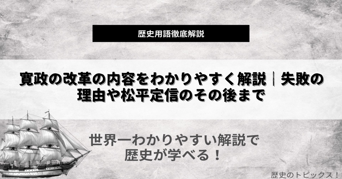 結果として定信は味方を失い、失脚せざるを得なくなりました。改革の理想と現実のギャップが、そのまま失敗要因となったのです。