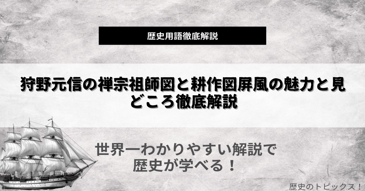 狩野元信は、室町時代後期の日本画壇を代表する絵師として、多くの名作を残しました。彼の作品は、禅宗祖師図や山水画、花鳥画など多岐にわたり、日本美術史の中でも重要な位置を占めています。本記事では、狩野元信の代表作を中心に、その特徴や背景、見どころを徹底解説します。室町文化に興味を持つ方、または日本美術の名作を知りたい方は、ぜひご一読ください。