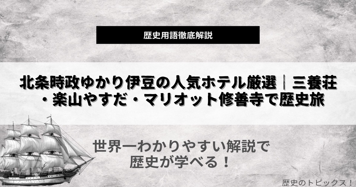伊豆は、歴史を深く感じられる地として多くの旅人を魅了しています。特に「北条」は、鎌倉幕府を支えた名家・北条家の初代執権として知られ、その足跡は伊豆各地に色濃く残っています。今回は、北条時政ゆかりのスポットや、歴史散策にぴったりの伊豆のおすすめホテルを厳選してご紹介。歴史ファンはもちろん、家族や友人との旅行にも最適な伊豆の魅力を存分に味わいましょう。