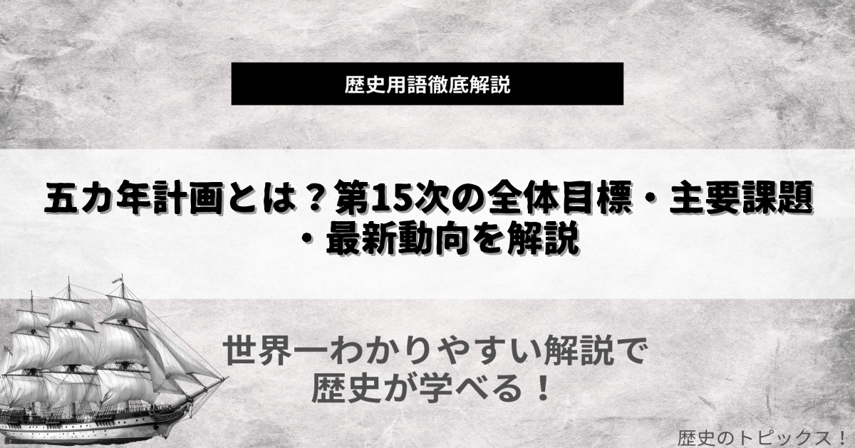 | 五カ年計画とは | 国家や自治体で5年ごとに策定される中期発展計画。経済・社会・技術などの分野での具体的な目標や施策が盛り込まれる。 |