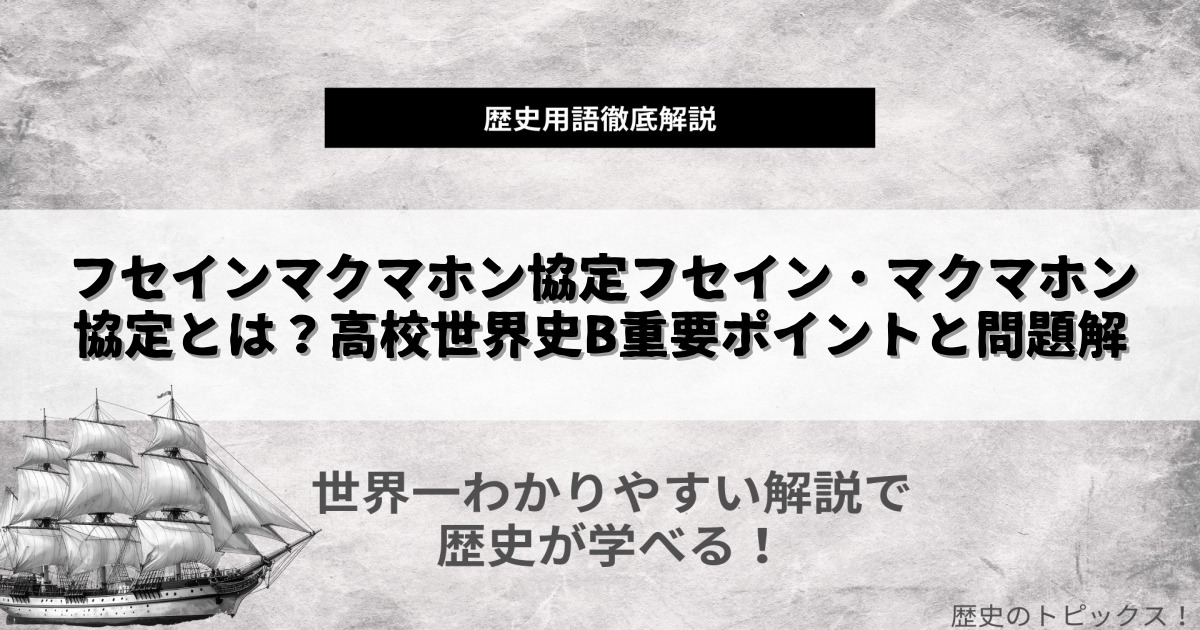 フセイン・マクマホン協定は、高校世界史Bのテストや入試頻出の重要語句です。