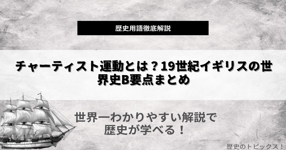 ここでは、高校世界史Bの教科書や受験で問われる「チャーティスト運動」に関する内容を、より実践的に解説します。用語の意味や流れを整理して、理解度を深めましょう。