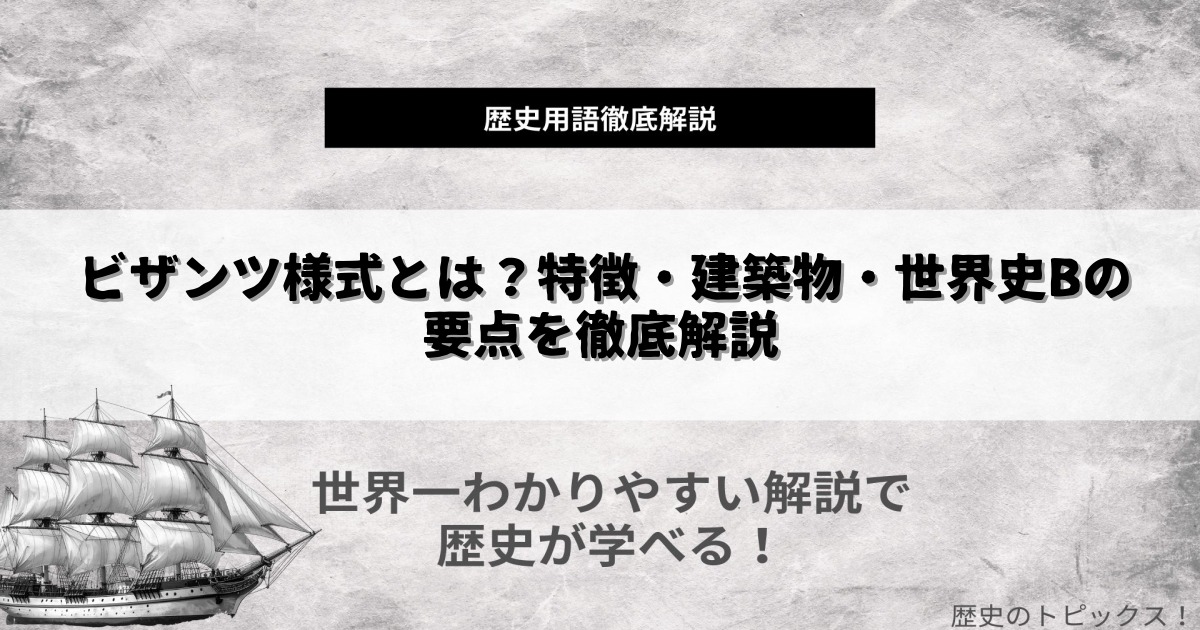 本記事では、ビザンツ様式の特徴、歴史的背景、代表的な建築物、そしてロマネスク様式・ゴシック様式との違いまで、世界史Bの学習にも役立つよう分かりやすく解説します。