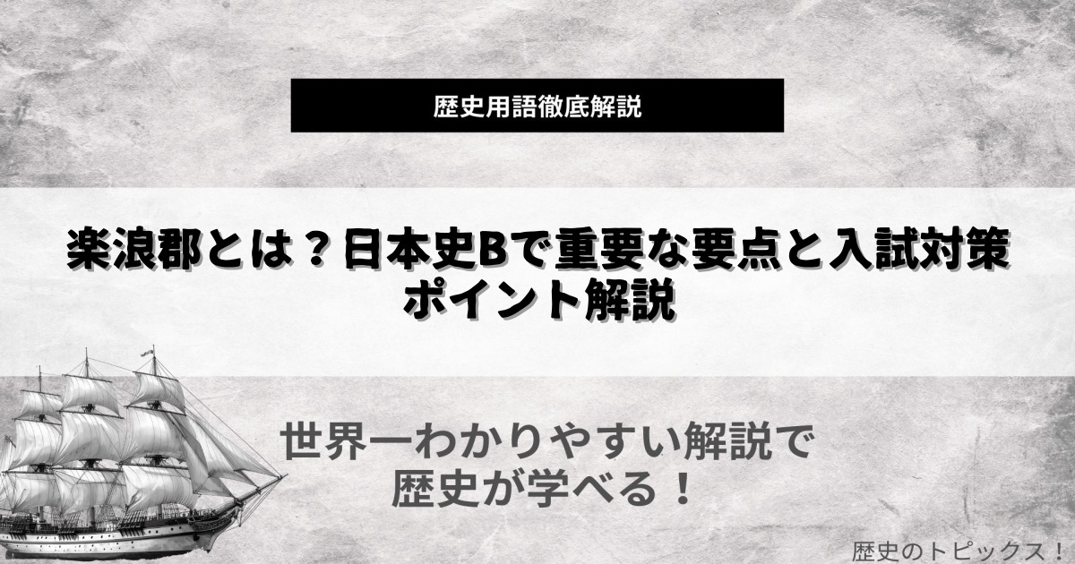 高校の日本史Bでは、楽浪郡は弥生時代の国際関係や日本の国家形成を問う問題でよく登場します。