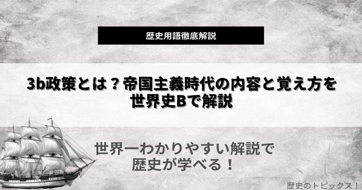 高校世界史Bでは、「3b政策とは」がどのような経緯で生まれ、どのような結果をもたらしたのかが頻繁に問われます。