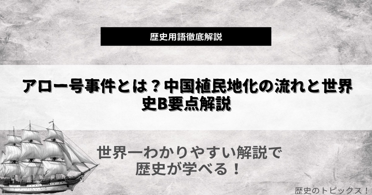 アロー号事件は、19世紀中頃の中国と西欧列強の関係を理解するうえで非常に重要な歴史用語です。本記事では「アロー号事件」の概要から、事件が引き金となったアロー戦争、そこから広がる中国と朝鮮の植民地化、そして高校世界史Bで押さえておくべきポイン... -