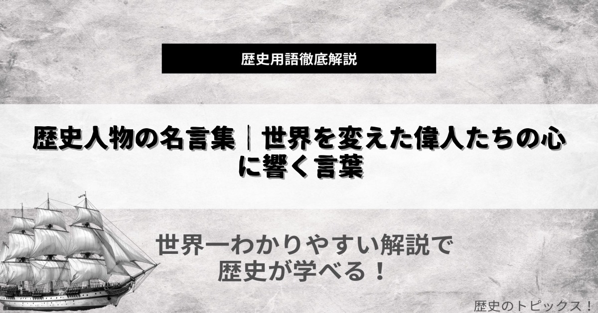 歴史の中で輝きを放ち続ける偉人たちは、その生き方や功績だけでなく、心に残る名言でも多くの人々に影響を与えてきました。「歴史人物」は、時代や国境を越えて、今なお人々の心を動かす力を持っています。本記事では、世界や日本の歴史上の人物たちが残... -