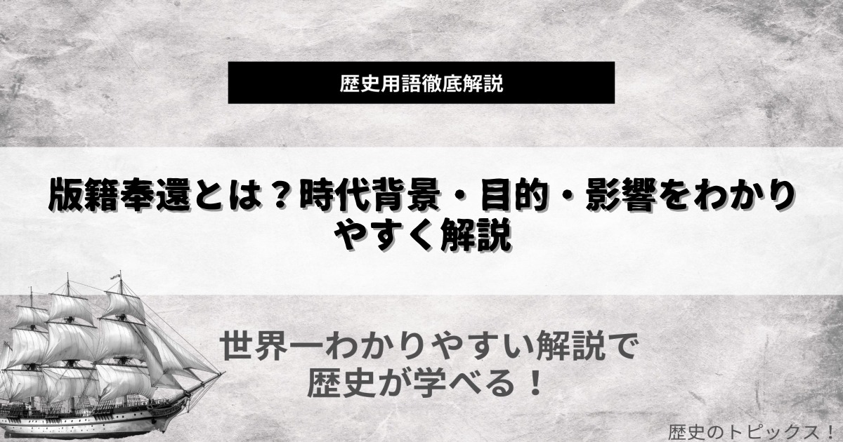 版籍奉還は、明治維新の中でも特に重要な改革の一つであり、日本が中央集権国家へと生まれ変わる大きな転換点となりました。江戸時代の藩と大名による支配体制から、近代国家への道を切り拓いたこの政策には、どのような意義や目的があったのでしょうか?... -