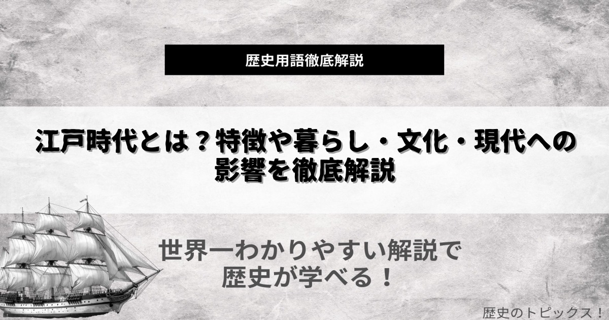 江戸時代は、日本の歴史の中でも特に長く平和が続いた時代として知られています。「江戸時代」なのか、その特徴や人々の暮らし、独自の文化、そして時代の終わりまで、分かりやすく徹底解説します。現代にも息づく江戸の知恵や伝統を知ることで、今の日本... -