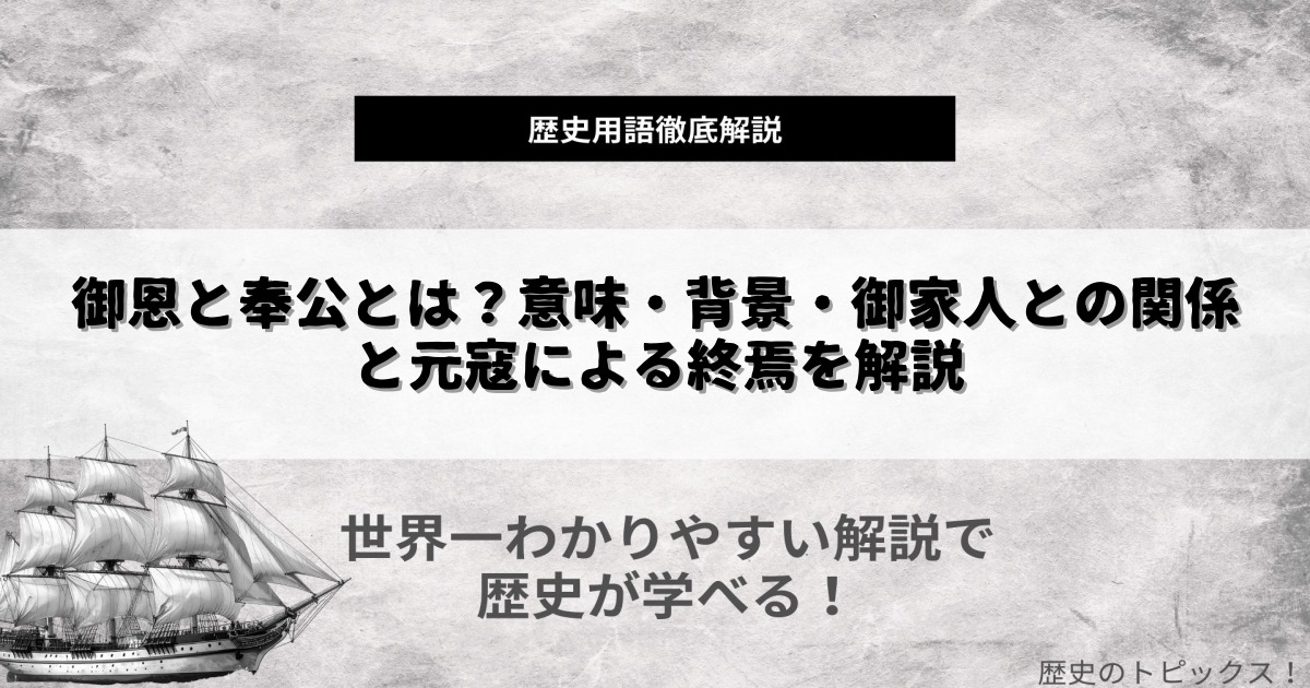 「御恩と奉公とは何か?」と聞かれたとき、歴史の授業で一度は耳にしたものの、詳しくは説明できない…そんな方も多いのではないでしょうか。御恩と奉公とは、武士社会の基礎となった鎌倉時代の将軍と御家人の関係を示す重要な歴史用語です。本記事では、御... -