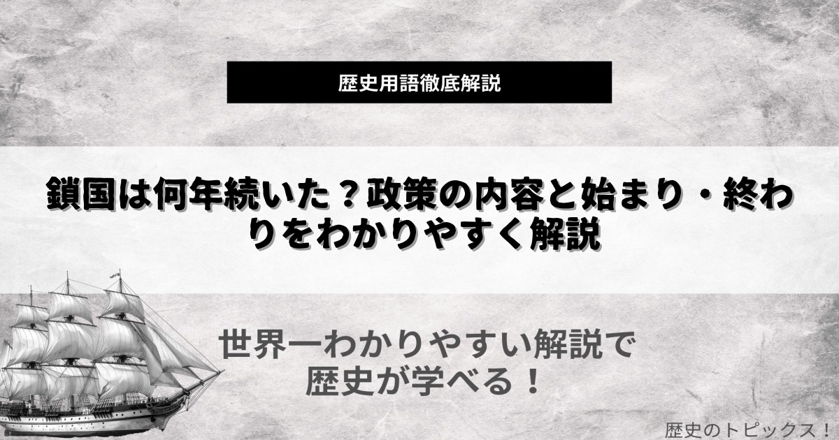 「鎖国」という疑問は、日本史を学ぶうえでよく耳にするものです。江戸時代の日本は、約200年以上にわたり海外との交流を厳しく制限し、独自の文化や社会を築いてきました。なぜ鎖国政策がとられ、いつ始まりいつ終わったのか、その理由や背景、そして鎖国... -