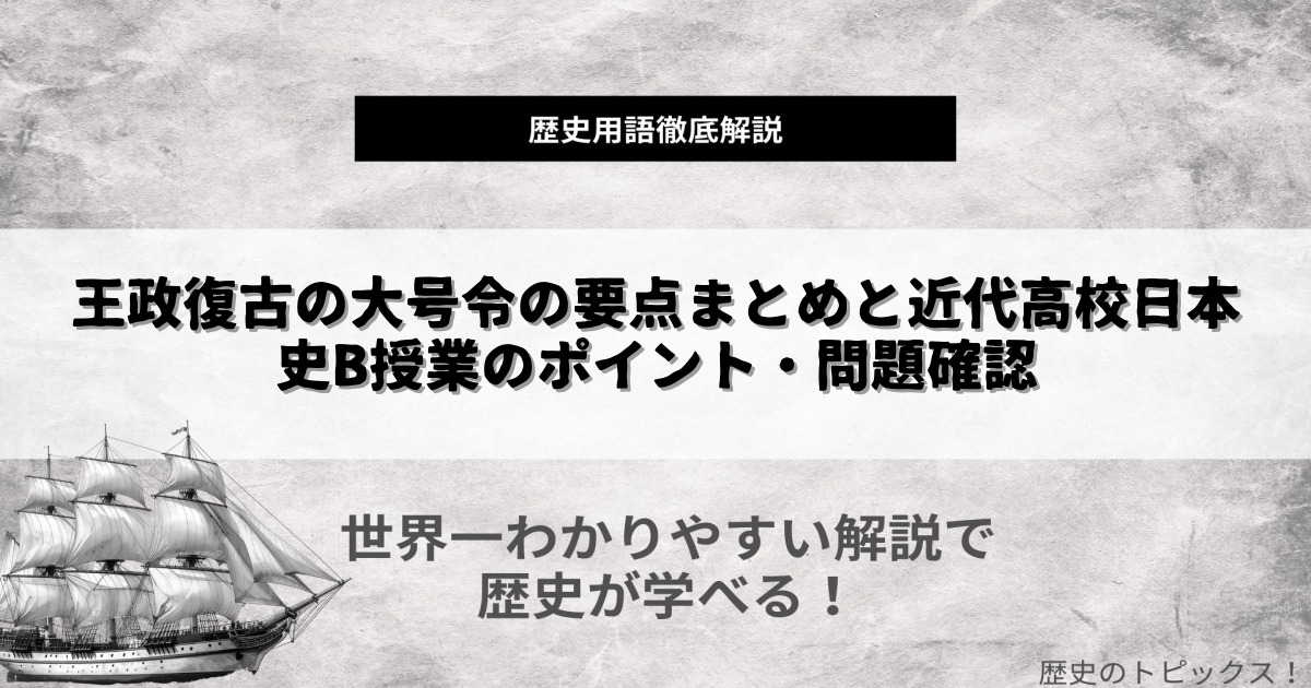 未分類王政復古の大号令の要点まとめと近代高校日本史B授業のポイント・問題確認