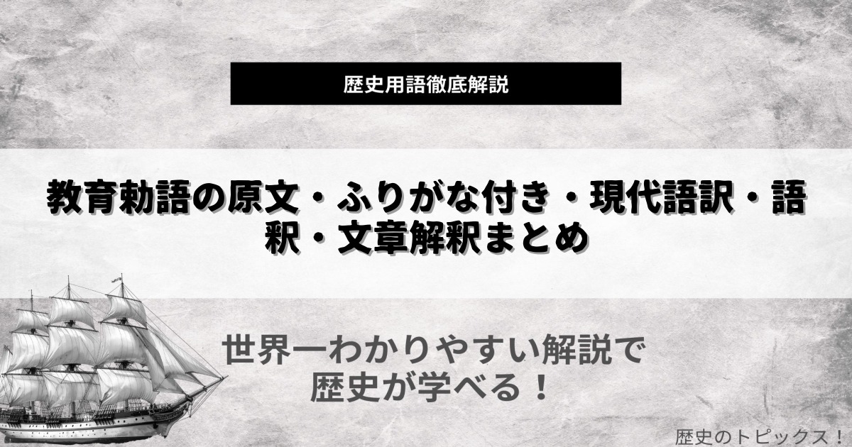 教育勅語は、明治時代の日本で制定され、戦前の教育体系の根幹をなした重要な歴史用語です。天皇が国民に向けて道徳や国民としての心得を示した勅語として知られ、現代でもたびたび議論の的となります。本記事では教育勅語の原文、ふりがな付き、現代語訳... -