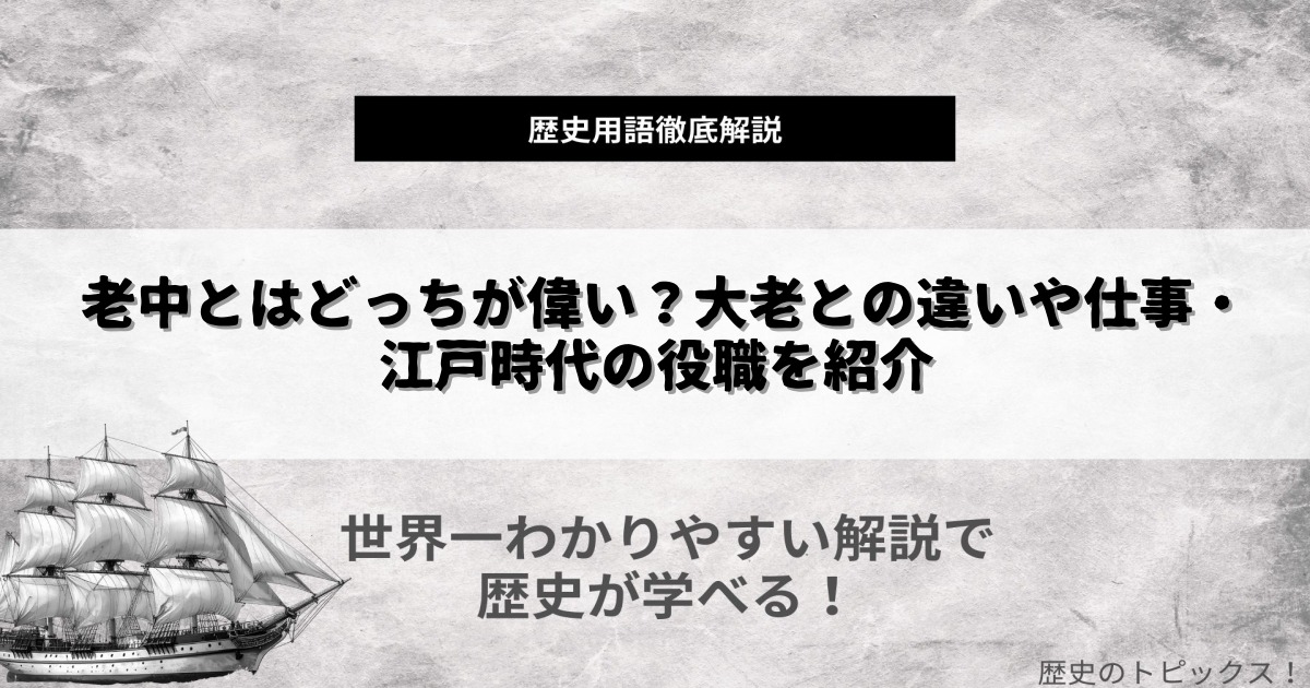 江戸時代の政治ドラマや歴史の授業でよく耳にする「老中とは」どのような役職なのでしょうか?将軍のすぐ下に位置し、幕政の中枢を担った老中は、実際にどんな権限や仕事を持っていたのか。また、「大老」とは何が違うのか、歴史を動かした有名な大老・老... -